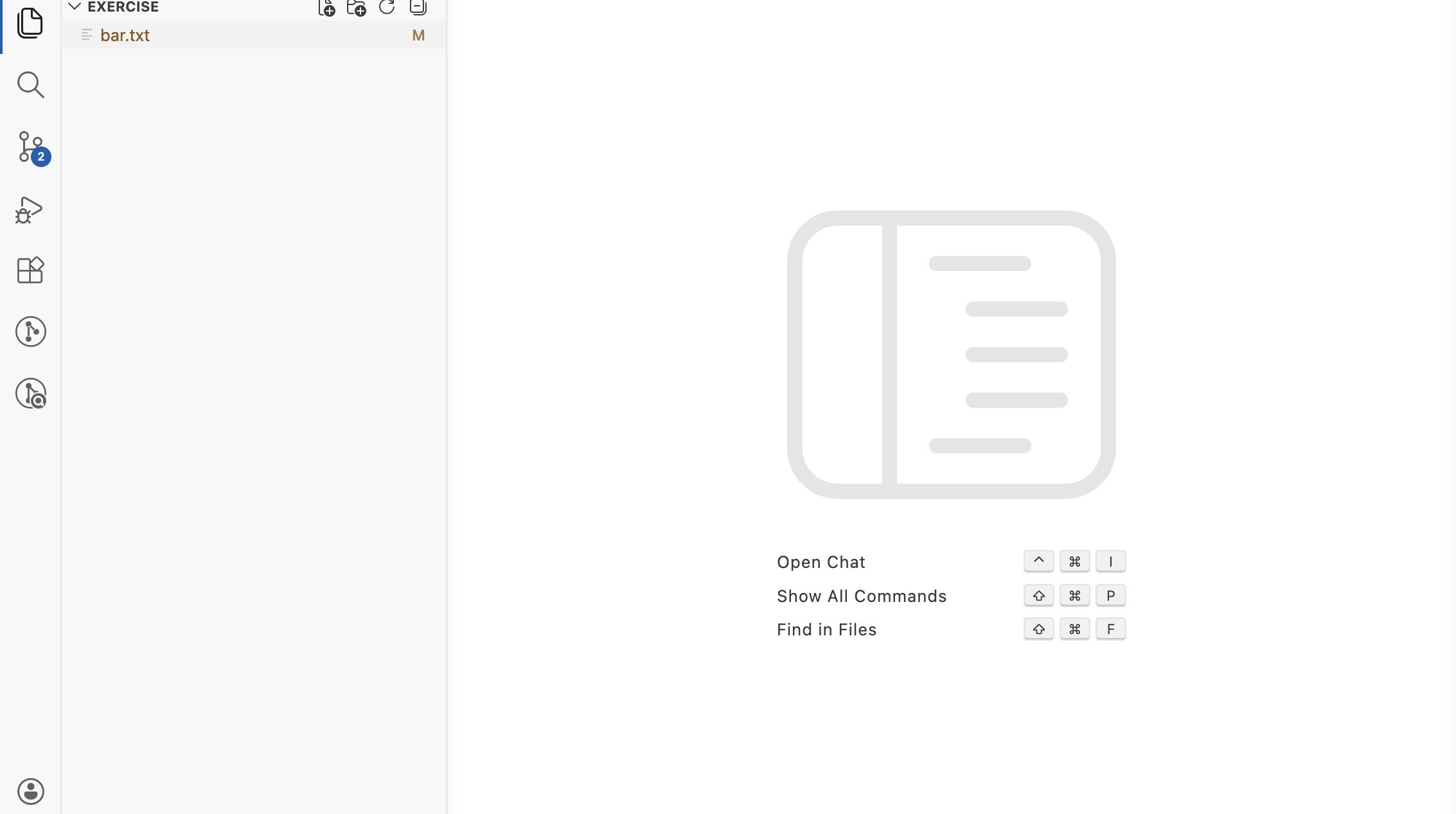 bar.txt(M = modified). Die Dateifoo.txtfehlt - sie wurde gelöscht. Wechsle in die Repository-Ansicht.