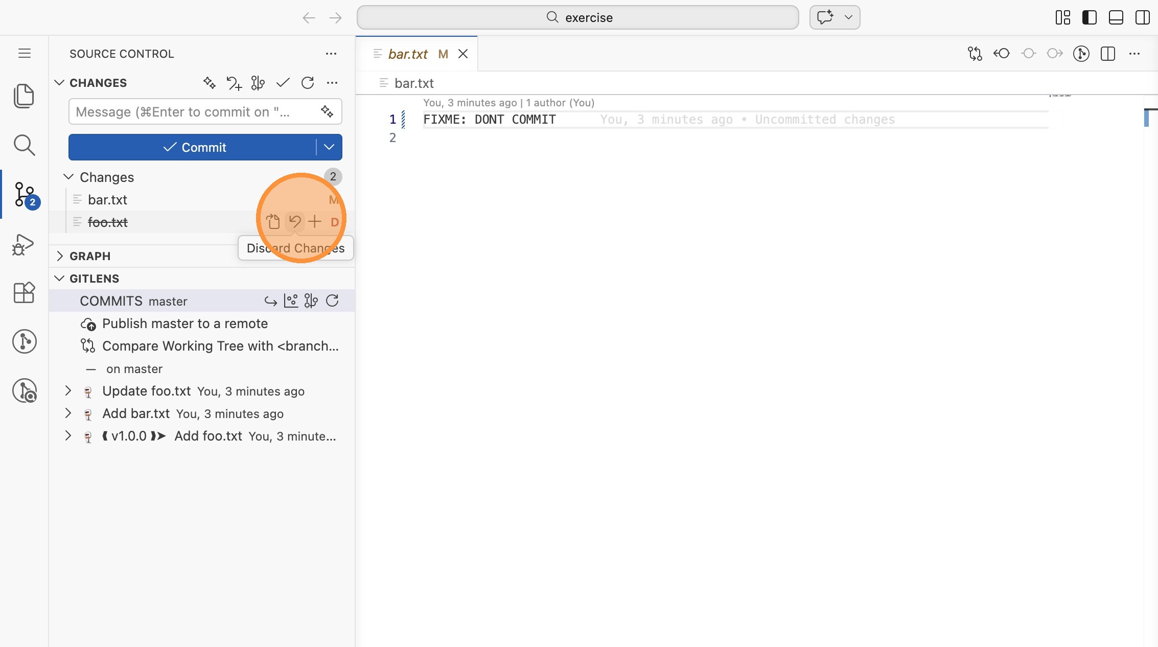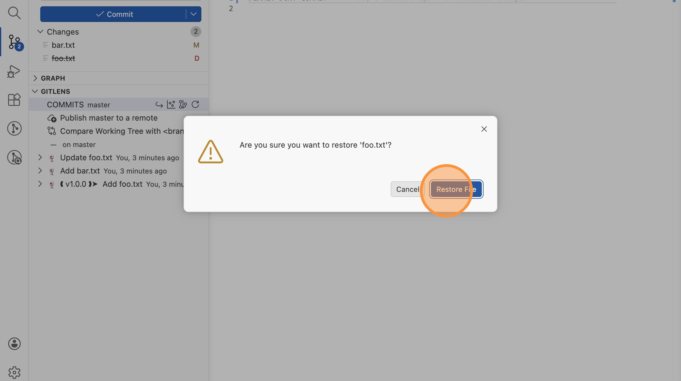 foo.txtauf "Discard Changes" (das Rückgängig-Symbol). Bestätige mit "Restore File".