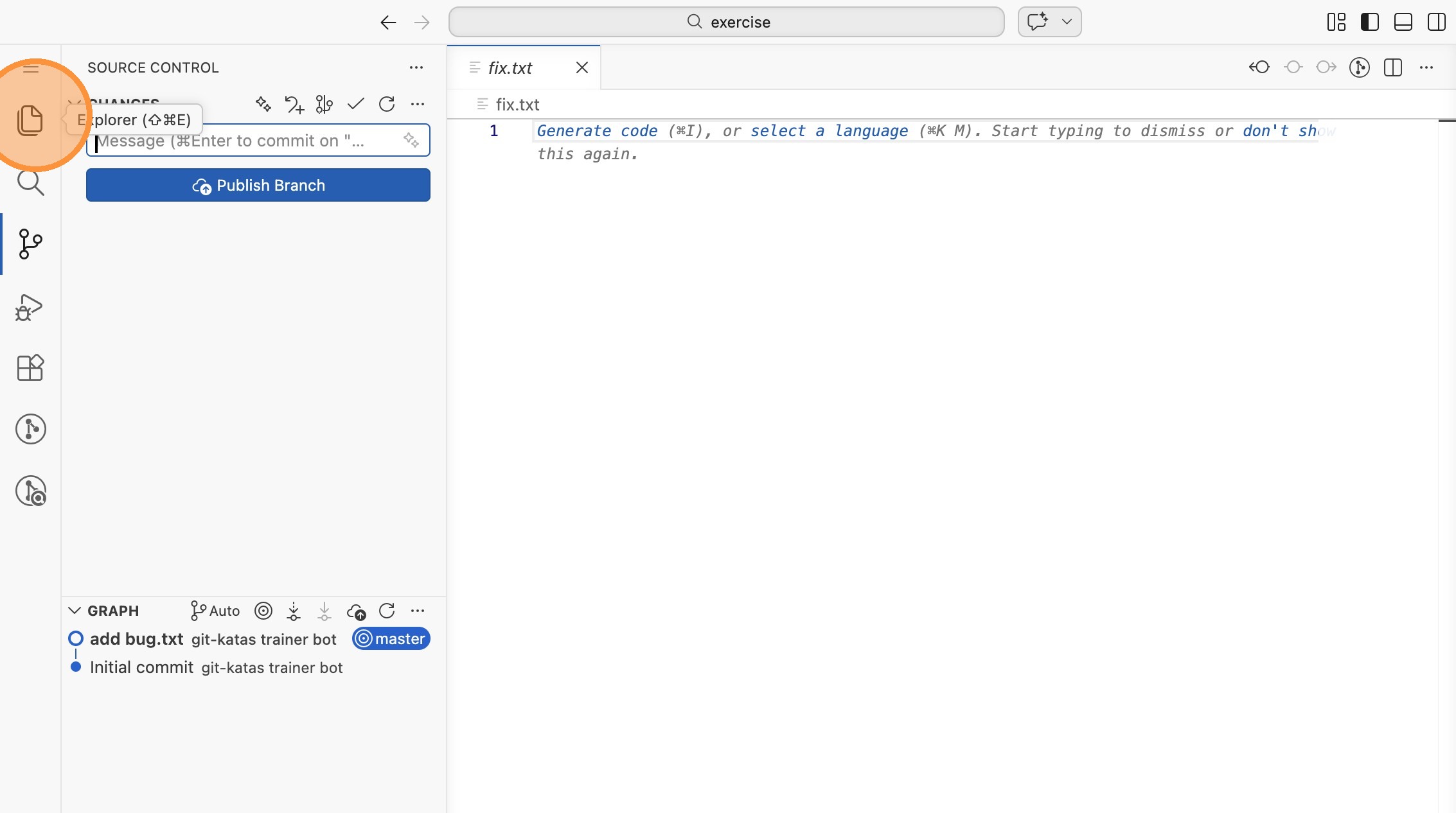 Öffne VS Code im Verzeichnis labs/12-basic-stashing/exercise.