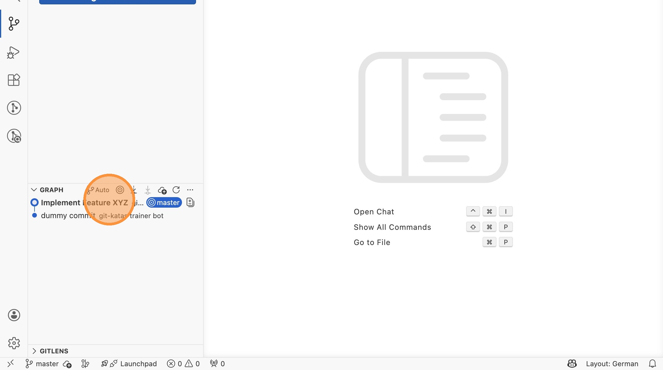 - Erstelle eine kleine Änderung an einer Datei, stage und committe sie mit der Nachricht "Implement Feature XYZ".