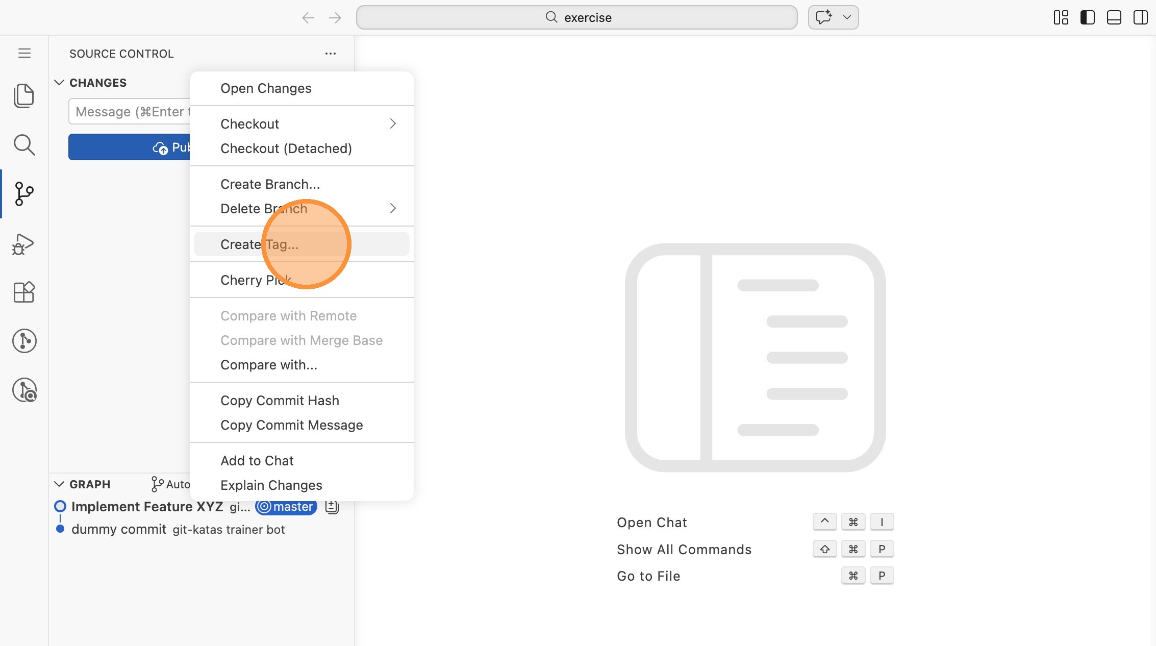 - Rechtsklicke im Graphen auf den neuen Commit und wähle "Create Tag..."